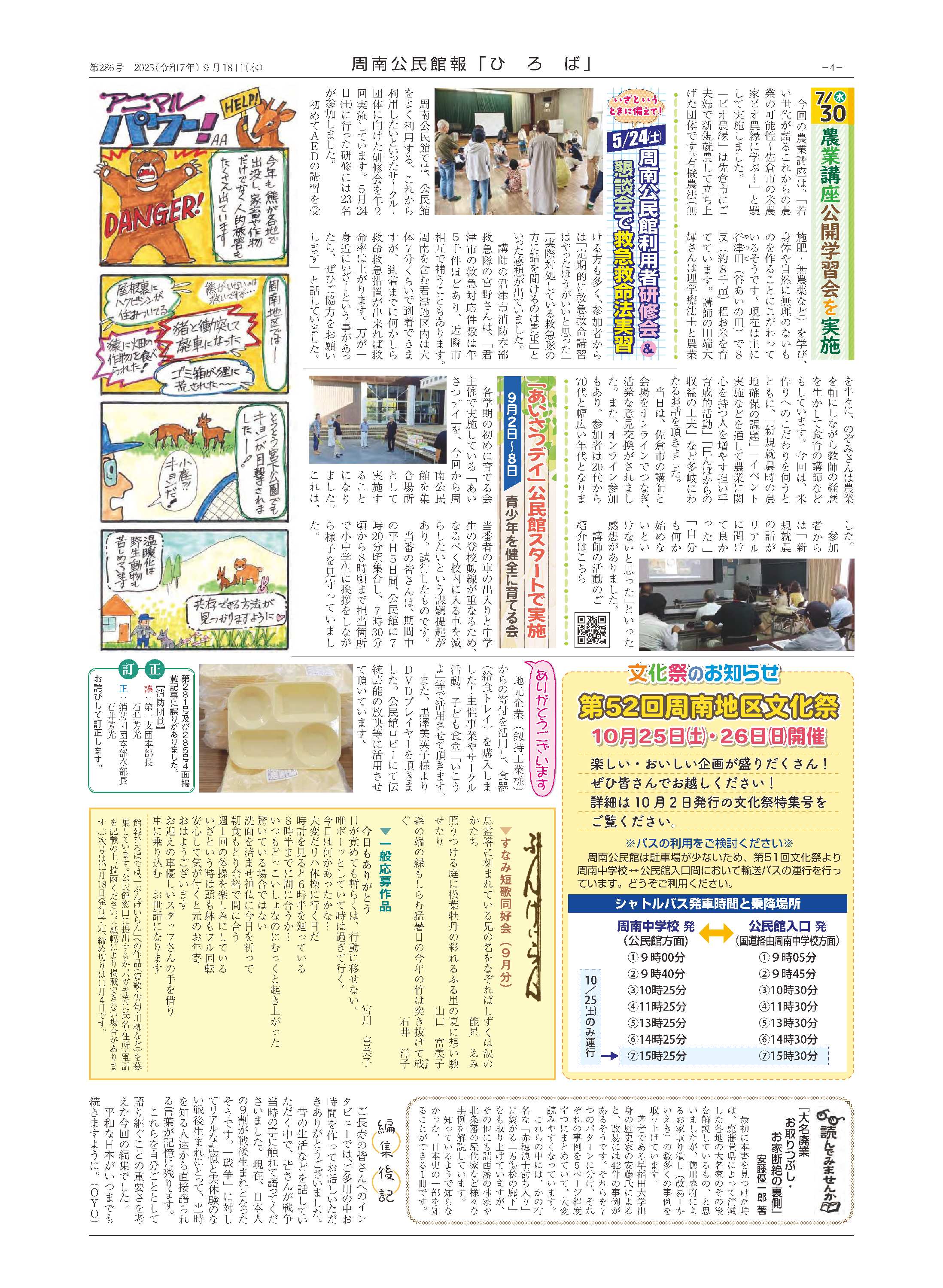周南公民館報ひろば 第286号(令和7年9月18日発行) 4面 [その他のファイル/907KB]