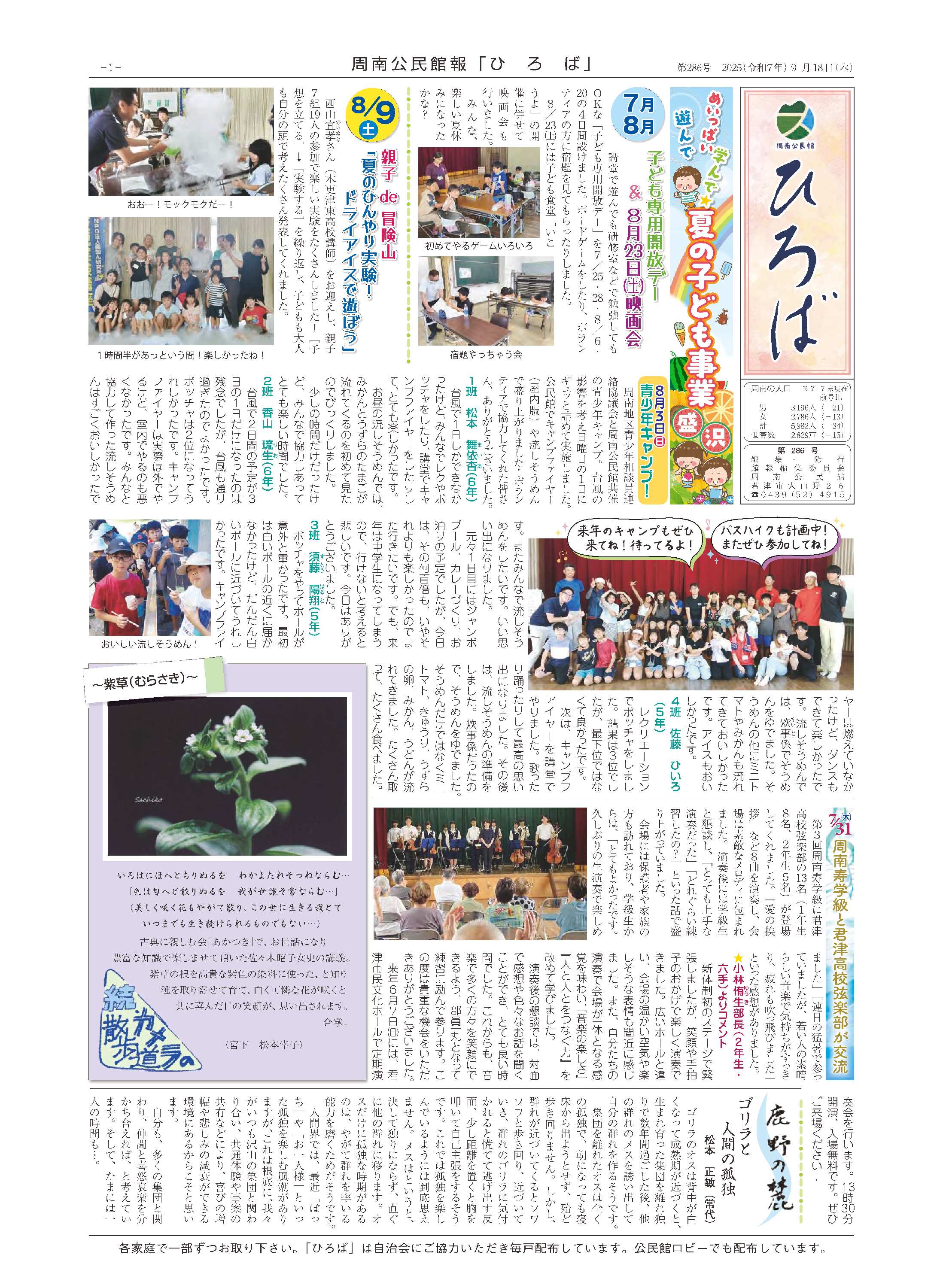 周南公民館報ひろば 第286号(令和7年9月18日発行) 1面 [その他のファイル/887KB]